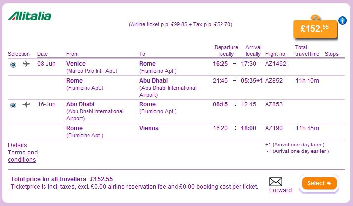Venecija >> Abu Dhabi >> Beč 183€