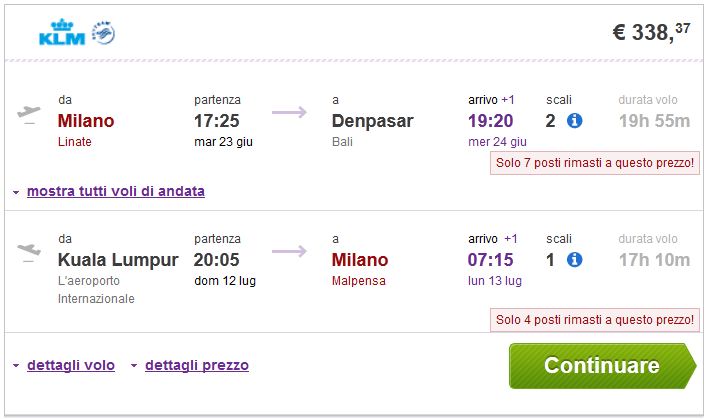 Milano >> Denpasar (Bali) — Kuala Lumpur >> Milano 338€ (direktan link)
