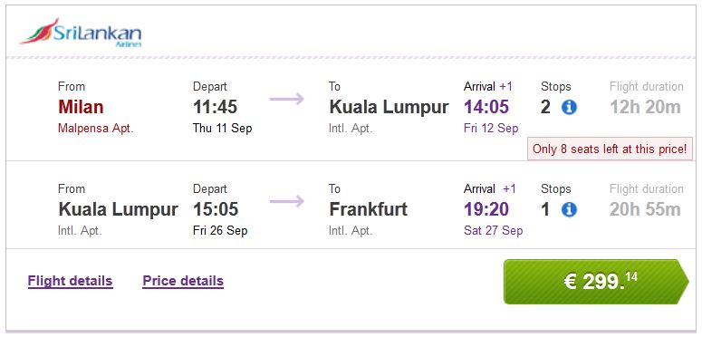 Milan >> Kuala Lumpur >> Frankfurt 299€ (direktan link)