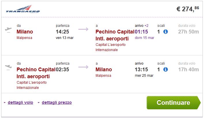 Milano >> Peking >> Milano 274€ (direktan link)