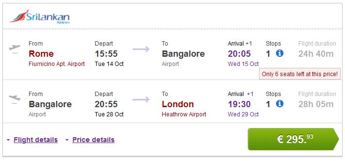 Rim >> Bangalore >> London 295€ (direktan link)