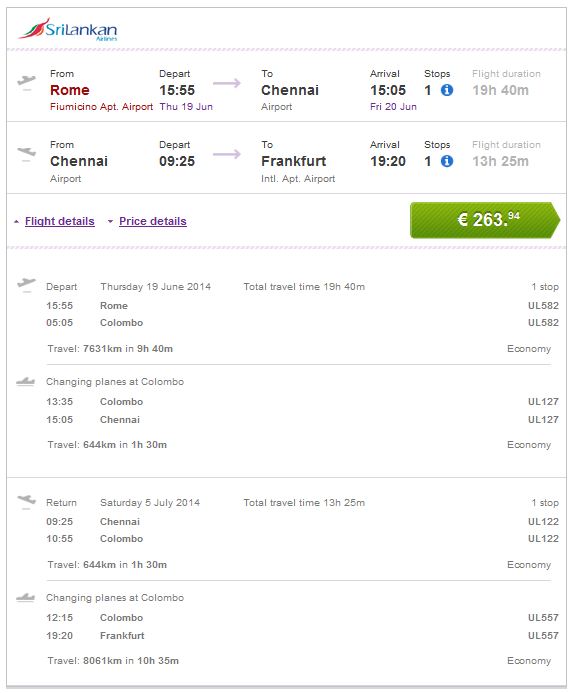 Rim >> Chennai >> Frankfurt   264€ (direktan link)