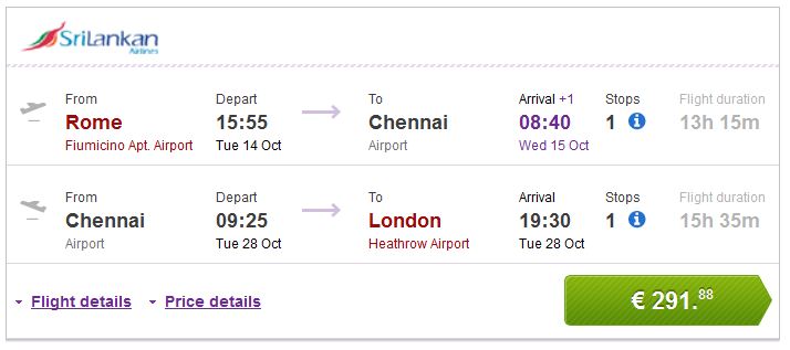 Rim >> Chennai >> London 291€ (direktan link)