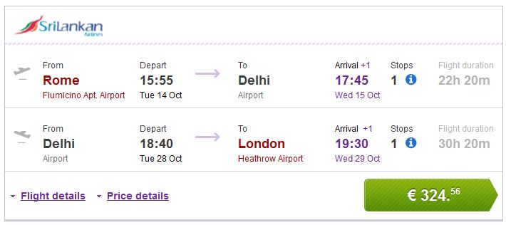 Rim >> Delhi >> London 324€ (direktan link)