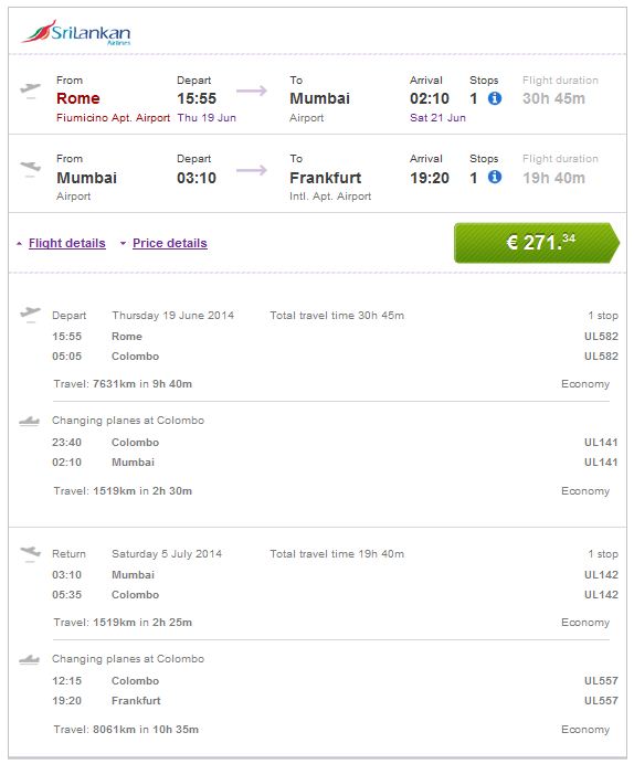 Rim >> Mumbai >> Frankfurt   271€ (direktan link)