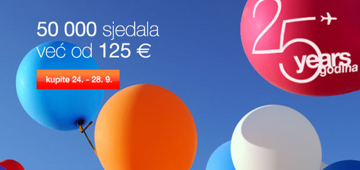 Povodom svog 25-og rođendana Croatia Airlines ima novu akciju. U prodaju je pušteno 50.000 mjesta na međunarodnim linijama po cijeni već od 125€ za povratnu avio kartu. Cijena uključuje sve takse i naknadu za izdavanje karte a vrijedi samo za kupovinu na Croatia Airlines web stranici.