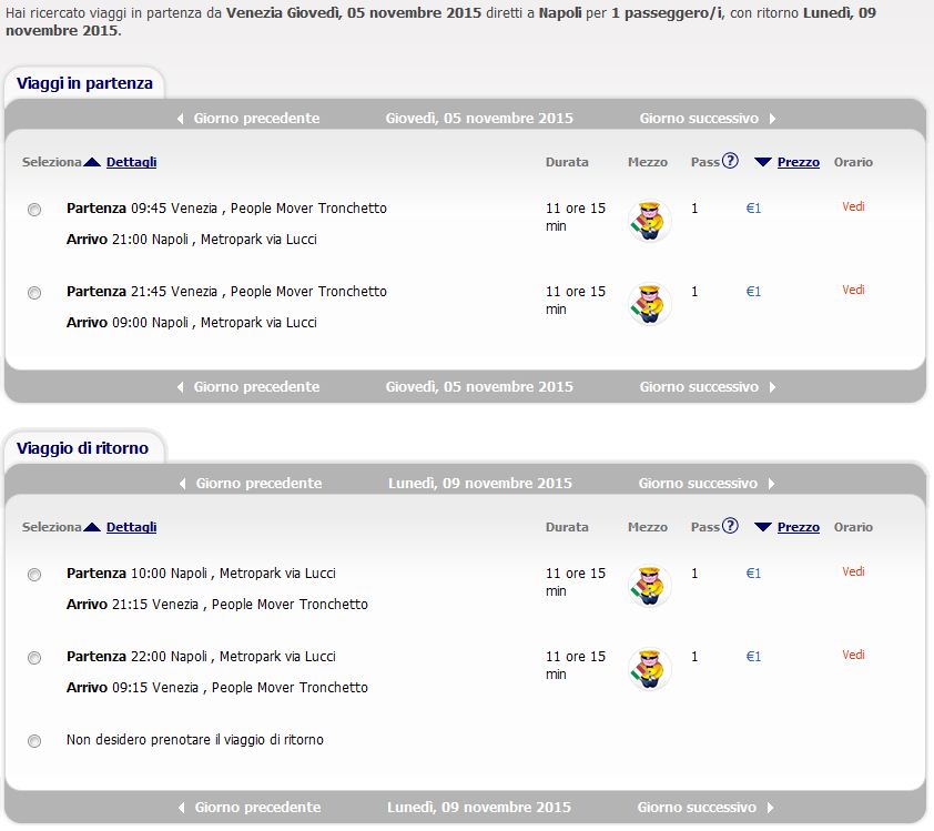 Venecija >> Napoli >> venecija 4€ za dvije osobe
