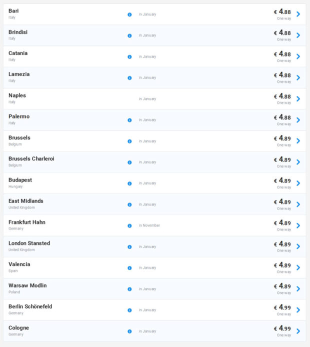 U nastavku navodimo samo nekoliko primjera cijena s nama zanimljivog aerodroma u Veneciji (Treviso), sve ostale linije lako možete sami provjeriti na Ryanair stranicama. Sretan put! 🙂
