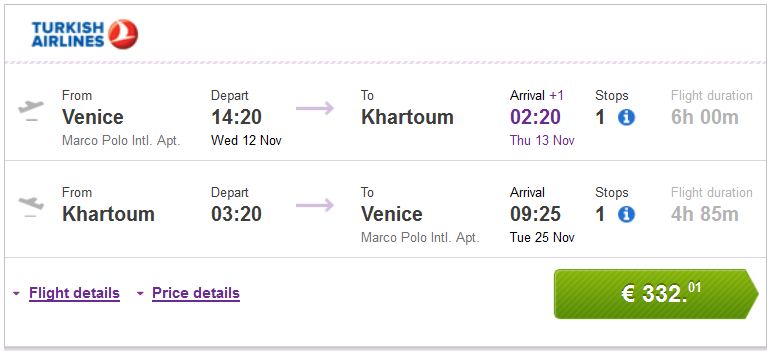 Venecija >> Khartoum >> Venecija 322€ (direktan link)