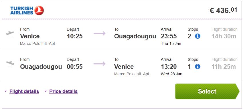 Venecija >> Ouagadougou >> Venecija 382€ (direktan link)