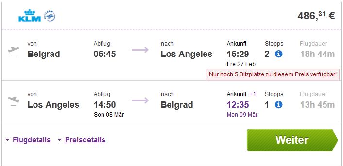 Beograd >> Los Angeles >> Beograd 486€ (direktan link)