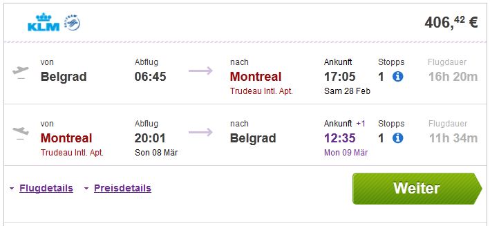 Beograd >> Montreal >> Beograd 406€ (direktan link)