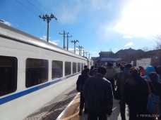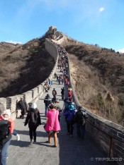 Dan kada smo mi išli bila je subota što znači i prilična gužva. Dan ranije odlazak nam je propao zbog problema sa karticom a bilo bi puno bolje da je petak. Vikendom, pored turista, i mnogi Kinezi idu na izlet. Naša odluka da idemo vlakom pokazala se kao odlična, vlak ide brže od busa, nema problema sa zastojima u prometu, komotniji je i ima više mjesta, a krajolik kojim prolazi je prelijep i često usput vidite i dijelove Kineskog zida. Na Beijing North Railway stanici je gužva a red se stvorio unutar same stanice, na perone ne puštaju dok ne bude vrijeme za ukrcaj. U redu uglavnom mladi ljudi, školarci, gotovo svi su Kinezi, vidjeli smo samo još trojicu bijelaca osim nas. Zanimljivo je da ljude drže u redu unutar zgrade stanice a vrata otvore tek kada vlak pristane na kolodvor. Karta nam ne treba jer imamo Yikatog, samo se kucamo na ulasku na peron, a cijeli put košta svega 6 juana. Kada otvore vrata nastane stampedo, svi počnu trčati da bi valjda osigurali svoje mjesto u vlaku. A vlak stoji negdje na kraju perona, valjda kilometar daleko od stanice. Svi trče pa smo potrčali i mi, i mogu reći da smo u boljoj formi nego Kinezi, prestigli smo ih većinu, znaju se i Balkanci gurati nismo mi neuki.