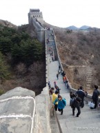 Ono što me iznenadilo je koliko je Zid strm na pojedinim dijelovima. Na nekim mjestima se stvarno morate pentrati što zahtjeva i dobru kondiciju. Zamislite 3 normalne stepenice spojene u jednu, i tako nekih sto metara do vrha korneta. Koliko god bilo teško za popeti se još je teže sići. Dovoljan je samo trenutak nepažnje da se čovjek posklizne pa da ga skupljaju negdje dole u podnožju. Zato je Zid uglavnom i zatvoren za vrijeme snijega i poledice. Zid je građen tolike širine da 4 konja mogu po njemu proći jedan pored drugoga. Ako im je to bila mjera ne znam kako su mjerili na ovim usponima, ovdje se niti jedan konj ne bi mogao popeti, jedino mi konji koji se i dan danas pentramo ovuda. Na zid se možete popeti i sa žičarom za 85 CNY po smjeru i sa njega sići toboganom dugim 3,7 km, ali u čemu je svrha doći na ovakvo mjesto i uzeti gotovansko rješenje do vrha. Budite fer prema sebi, popnite se vlastitim nogama i časno recite drugu Mau da ste bili gore kao pravi muškarac.